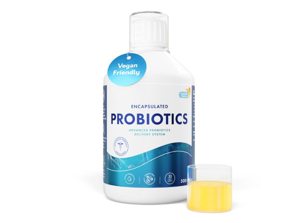 Probiotics 10 Billion CFU (zapúzdrené probiotiká) – výživový doplnok s príchuťou citróna. So sladidlom. 33 dávok v balení. Objem: 500 ml. Produkt je vo forme sirupu. Vhodné pre vegánov.